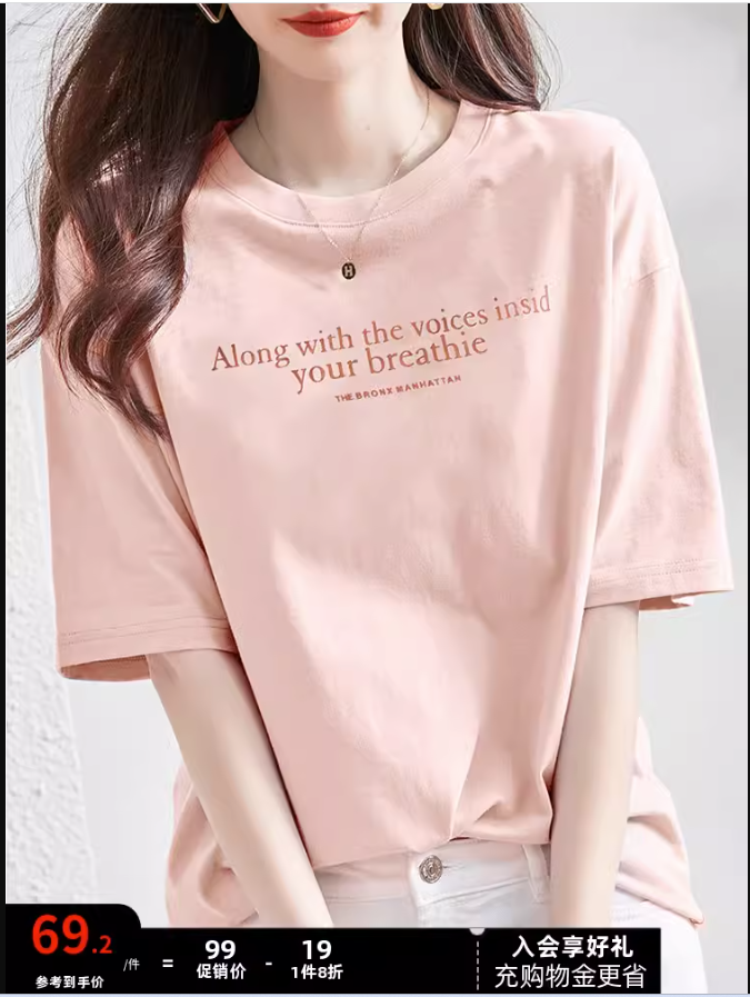 德玛纳粉色短袖T恤女