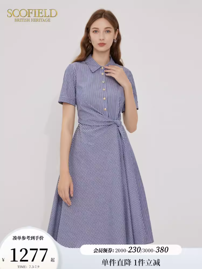甜美通勤气质衬衫裙条纹收腰连衣裙
