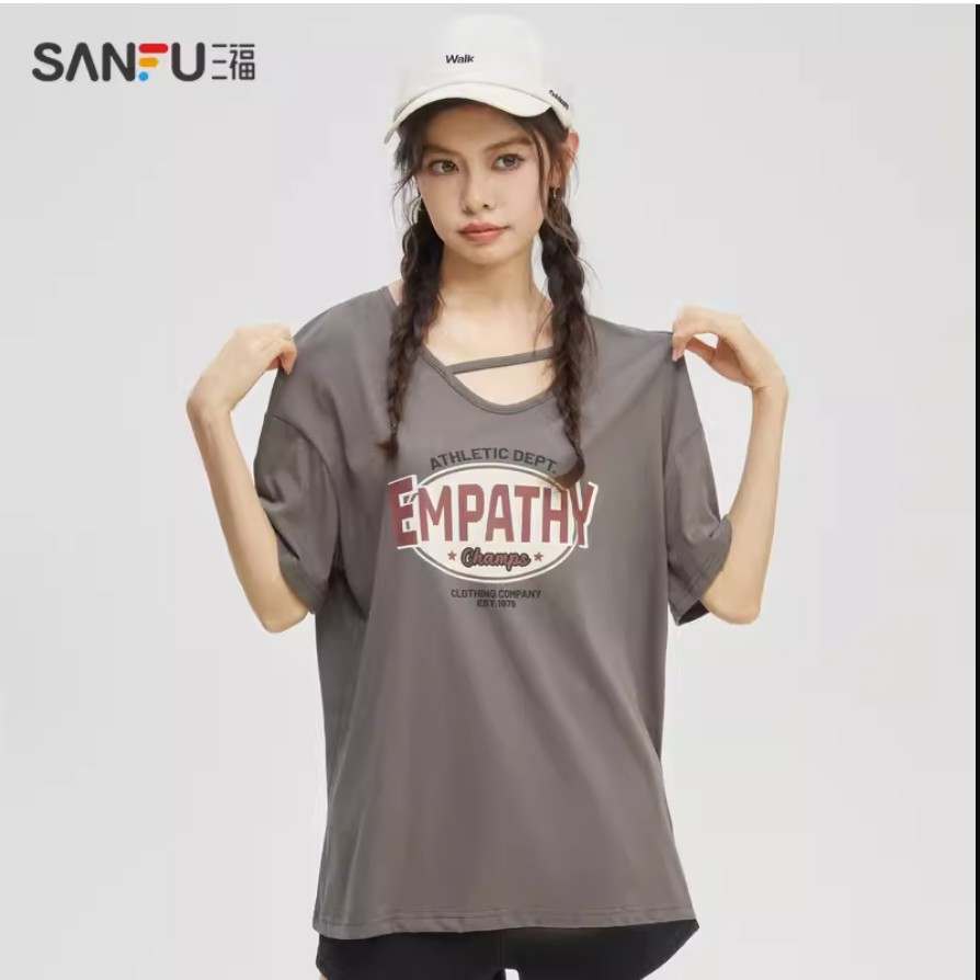 短袖T恤女装2023新款夏季美式复古印花