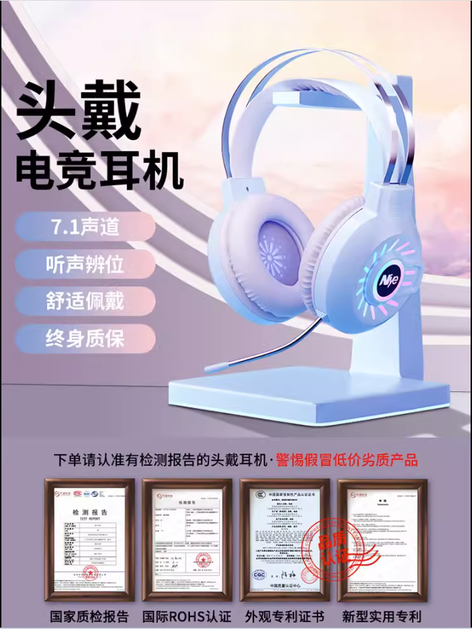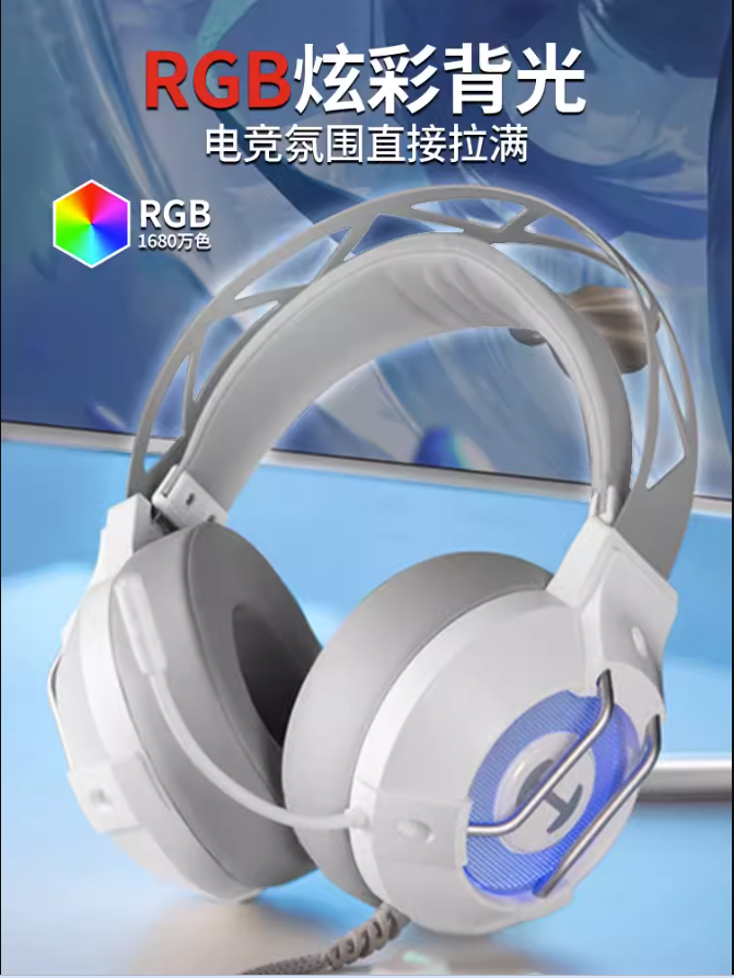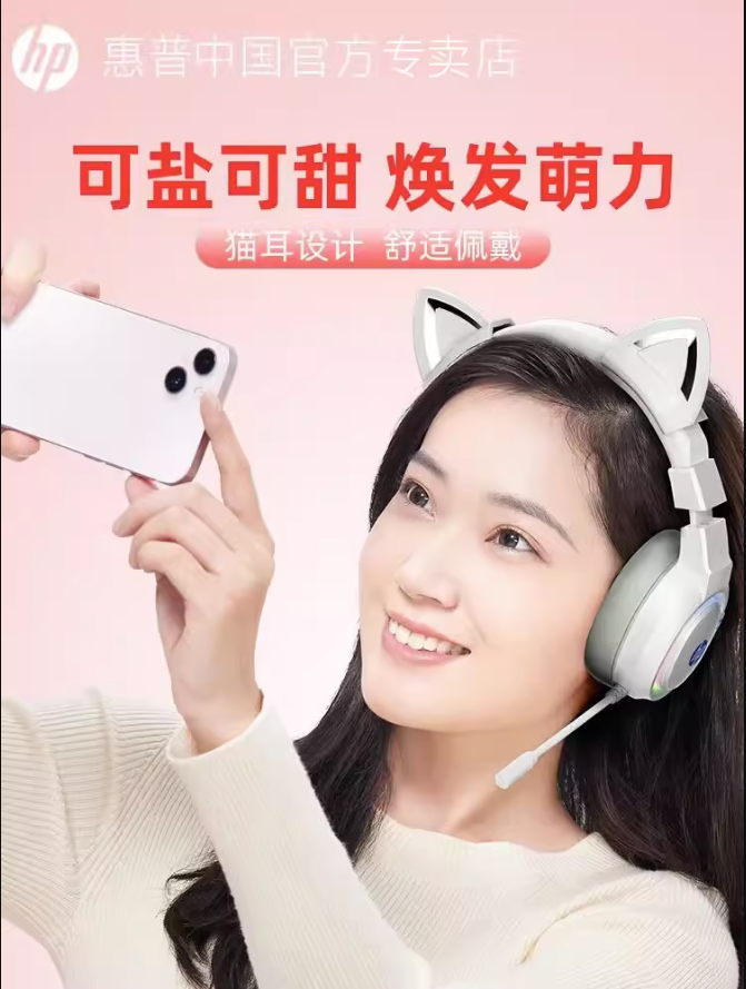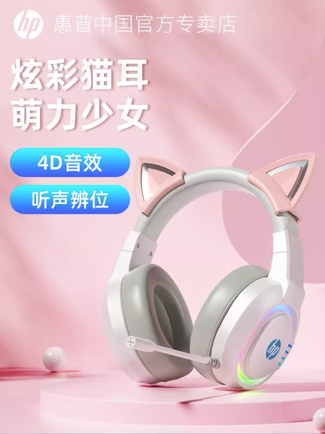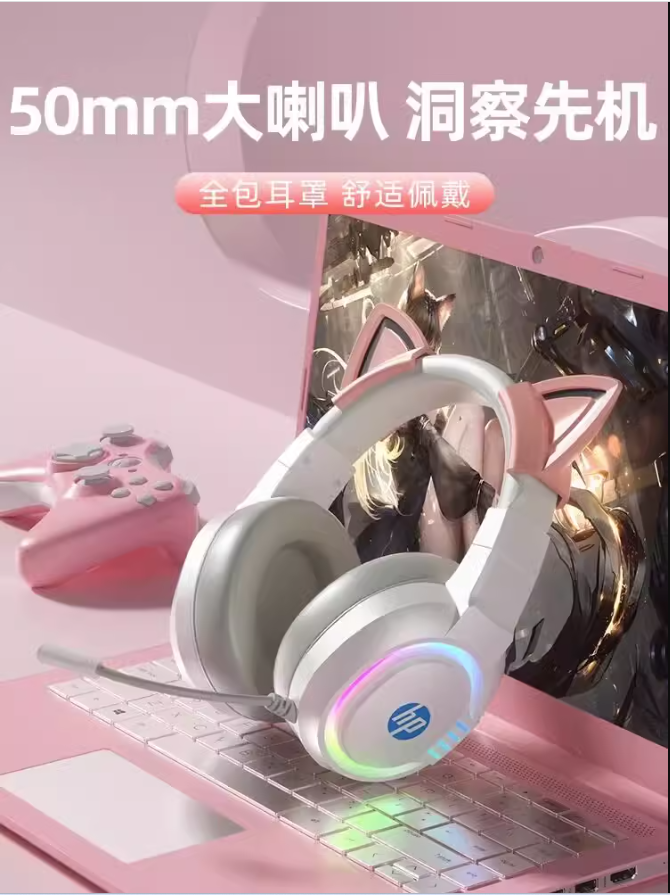头戴式耳机电竞游戏台式机电脑笔记本用直播猫耳朵有线耳麦